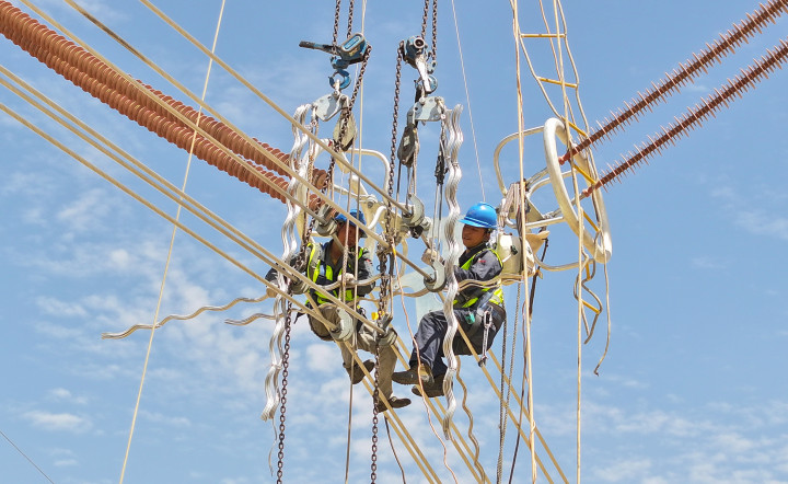 塔里木盆地南缘的清晨,热浪早已开始升腾。7月13日一早,33岁的架线工陈林攀上70米高的铁塔,像一位悬空的“舞者”,在导线上完成最后的附件安装。他的脚下,是望不到边的沙漠戈壁;他的身后,总长4197公里的环塔里木盆地750千伏输变电工程即将全线贯通。